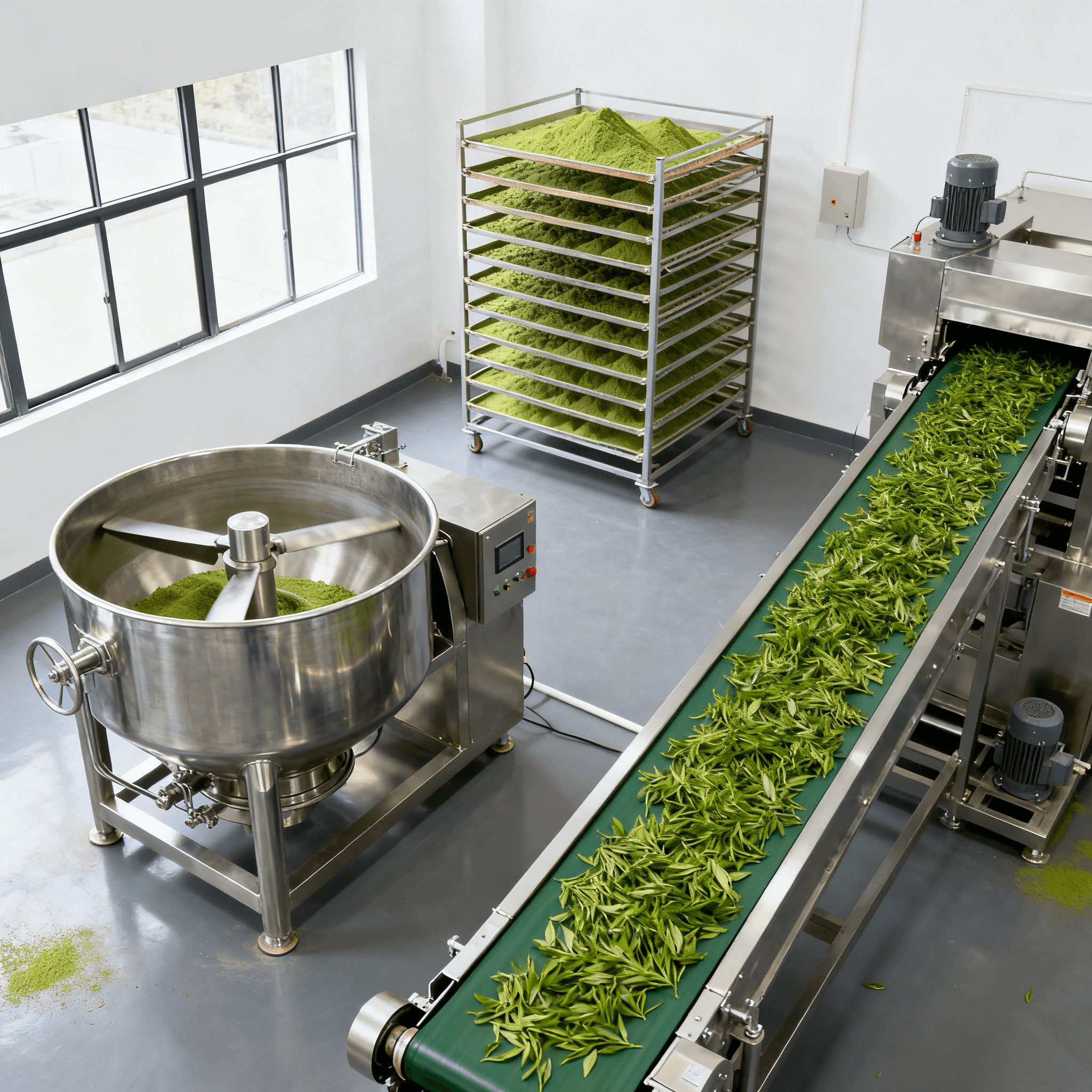 Powder manufacturing remains the most flexible format for matcha products. Our powder processing equipment produces uniform particle sizes for excellent mixability and consistent dosing.